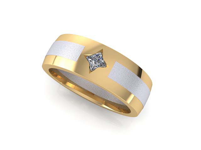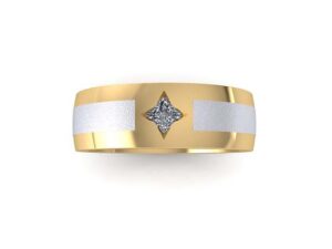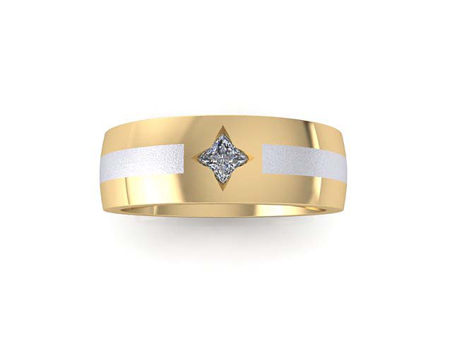 C.B. & I.B. Two Tone Wedding Band with Compass Set Princess Cut Diamond
