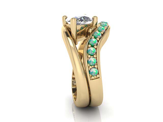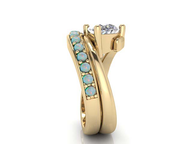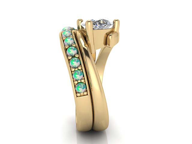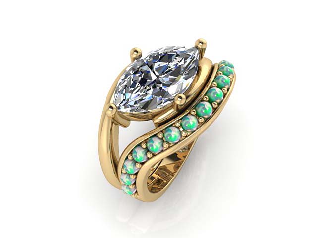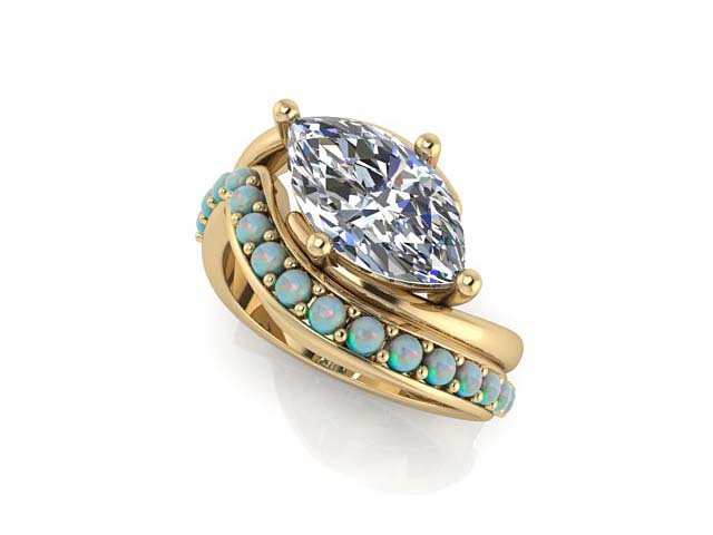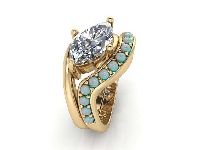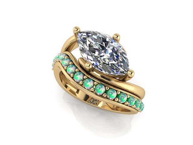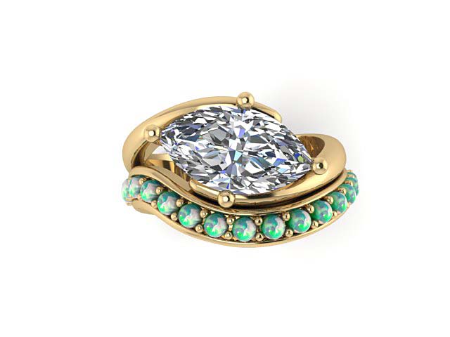 S.L. & S.P. Marquise Engagement Ring with Opal Wedding Band