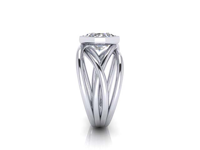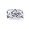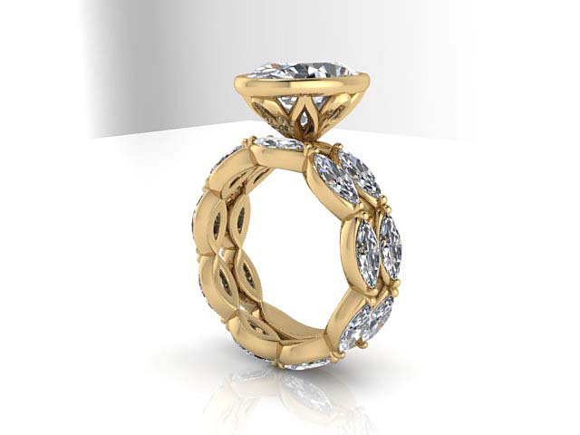S.A. & K.C. Wide Cathedral Engagement Ring with Round Diamond Eternity Band