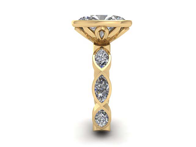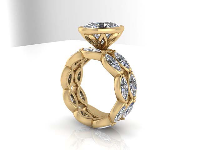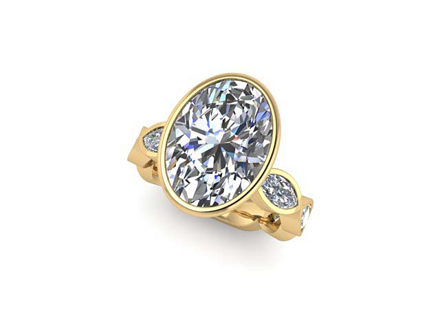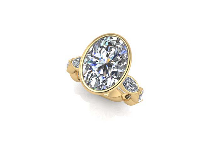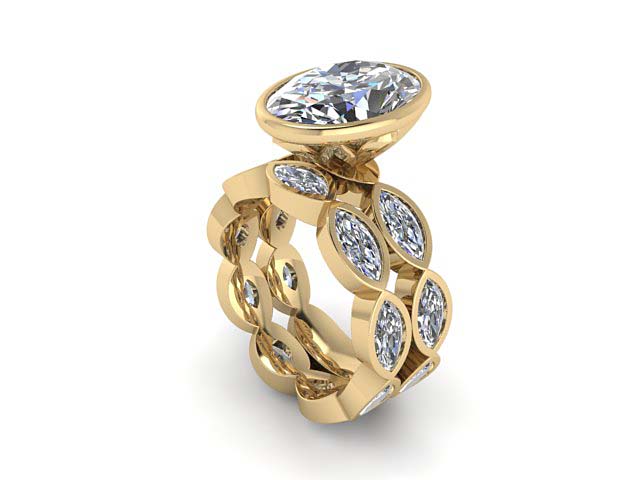 M.H. & E.R. Petal Bezel Oval with Bezel Marquise Band Engagement Ring