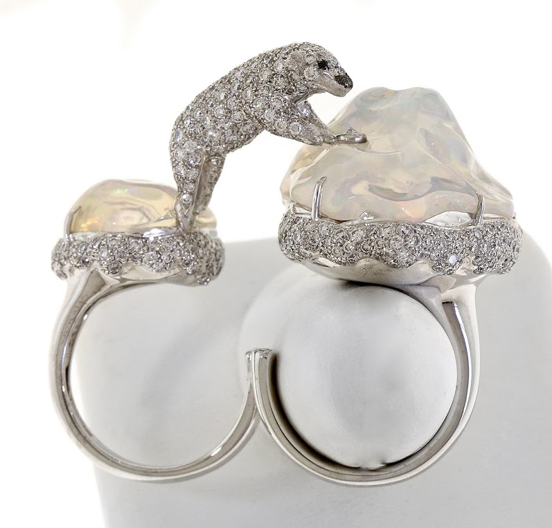 Ashlee Simpson donned Wendy Yue’s 18-karat white gold ring with coral, brown and black diamonds, pink, white and blue sapphires and rubies for the GQ Men of the Year party in Los Angeles.