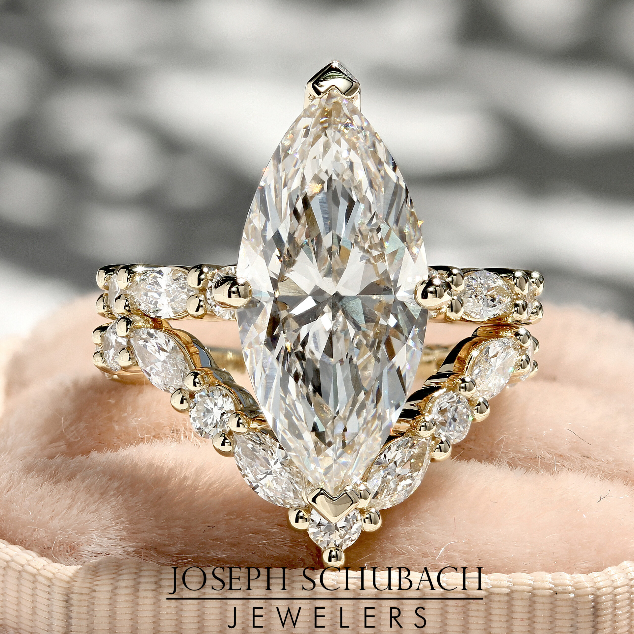 C.B. & L.P Custom Marquise and Round Diamond Wedding Set