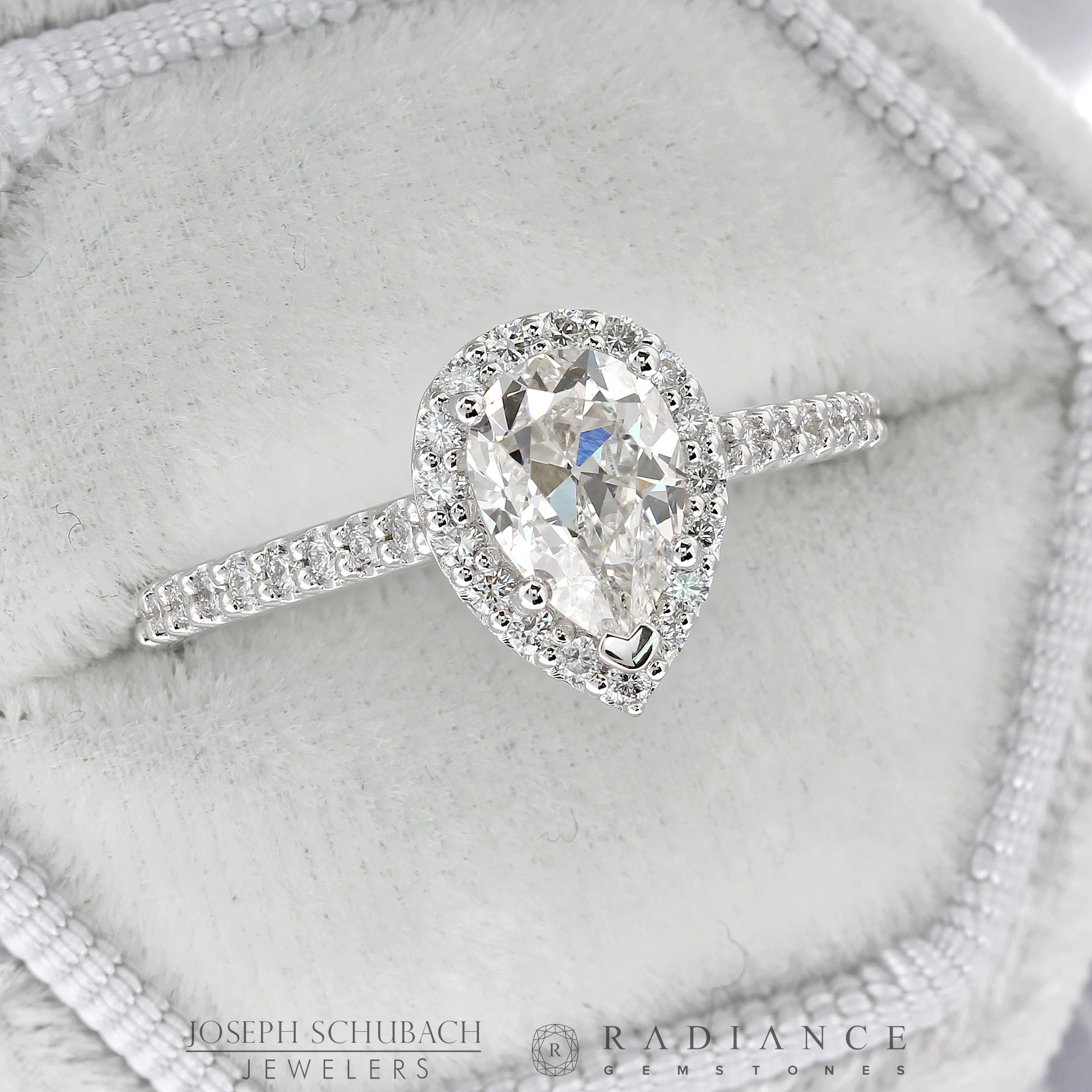 N.B. & A.W. Pear Shape Halo Engagement Ring